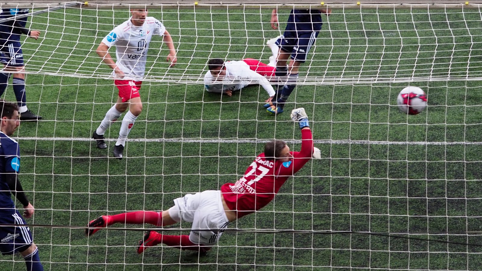 Men det skulle ikke gå lang til før gjestene var tilbake i ledelsen når Jakob Rasmussen klemte til på et frispark fra langt hold. Et blytung skudd inn via stanga, men allikevel en scoring Jenssen til vanlig plukker lett.