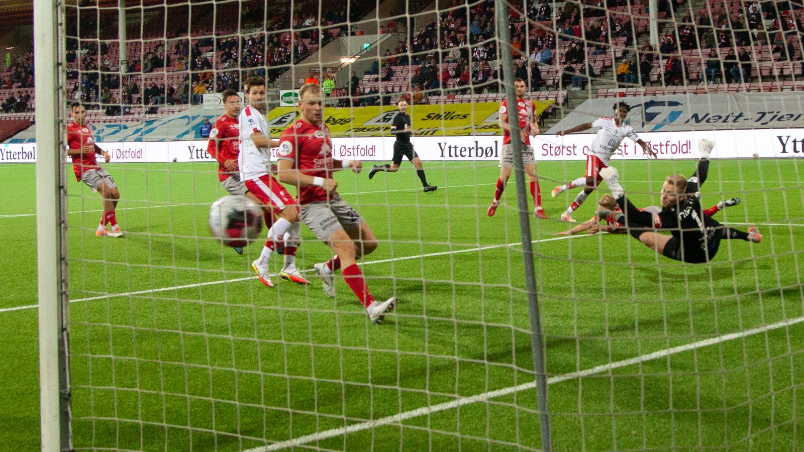 Riki Alba fosset nedover venstresiden, slo en lav ball inn foran mål, der kom evighetsmaskinen Håvard Åsheim og smalt ballen mellom beina på keeper og i mål, flott scoring fra FFK.