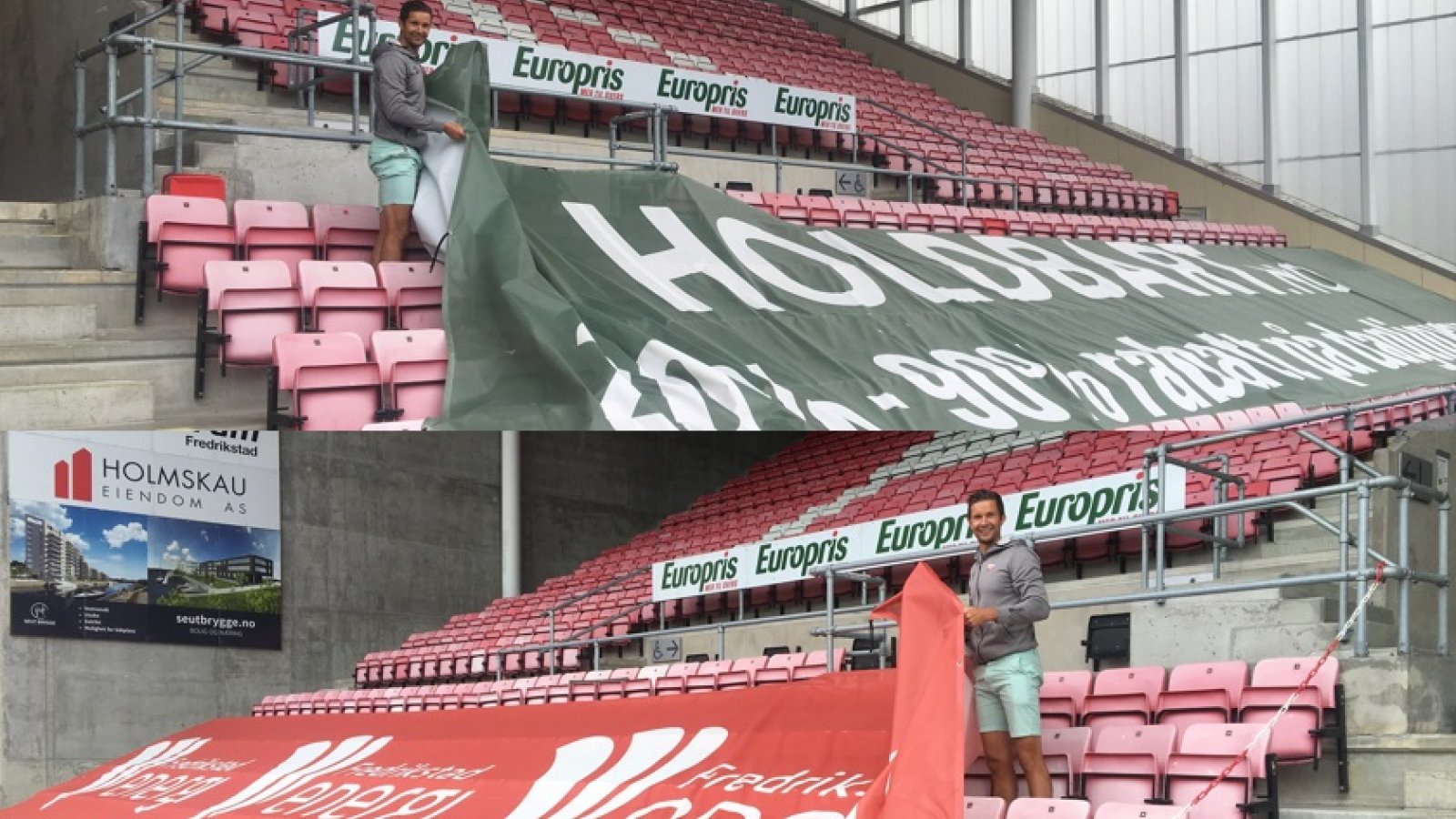 I dag måtte vi ta ned reklameseilene til Holdbart og Fredrikstad Energi for å kunne frigjøre 400 ekstra sitteplasser.
