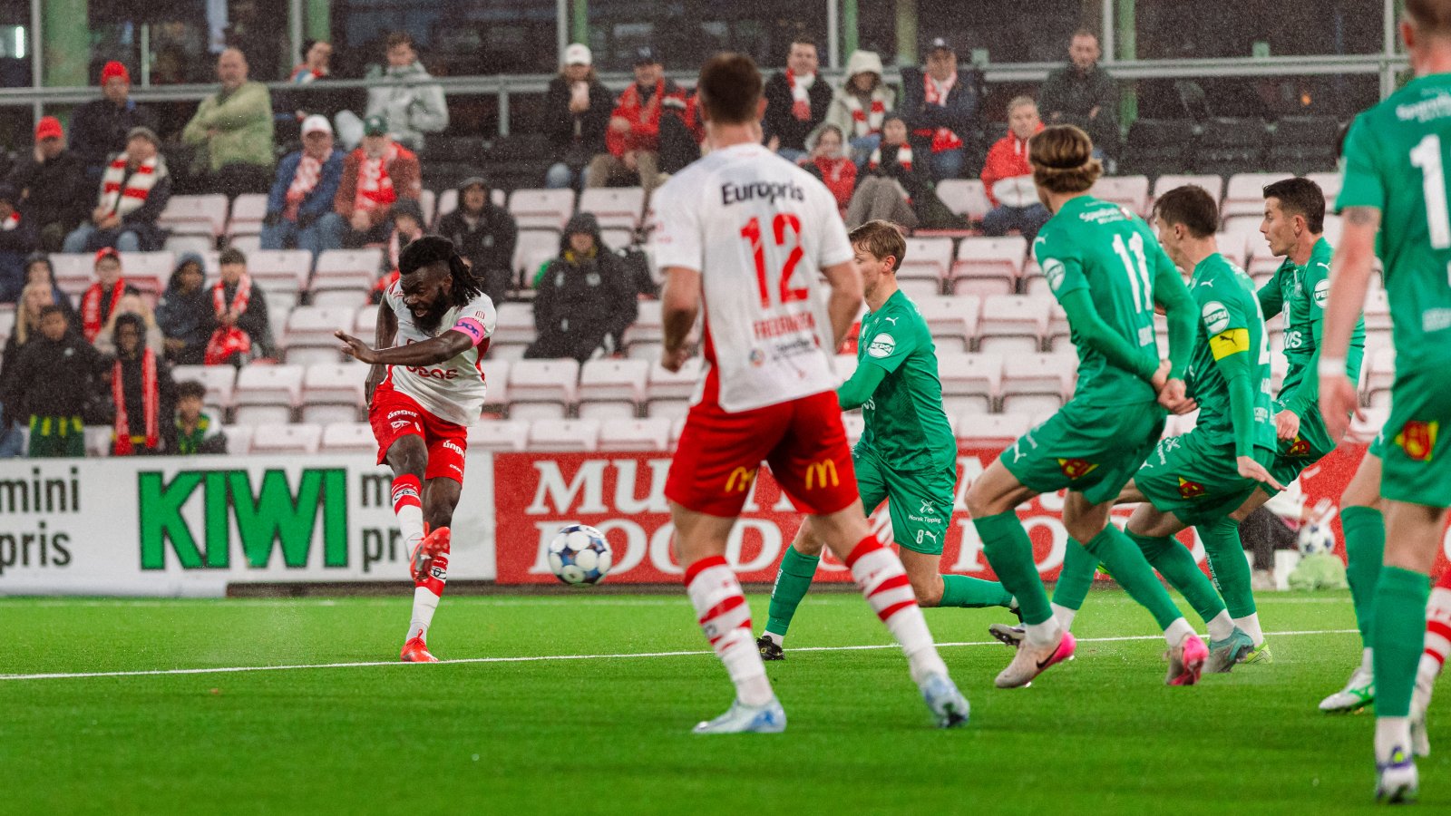 En det ville seg for var Leo Owusu. Med tjue minutter igjen av kampen plukket han opp restene av et hjørenespark, og leiesoldaten vår blåste til fra omtrent 16 meter. Til de 8018 tilskuerne i høstregnets store glede fløy ballen knallhardt opp i lengste kryss, og stillingen var 1-1.