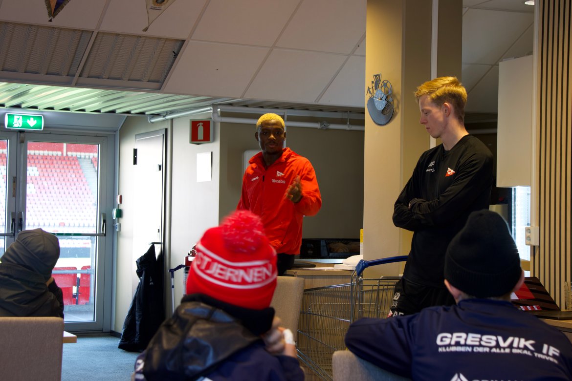Midt på dagen fikk deltakerne besøk av A-lagets egen Maxwell Woldezi, som fortalte om sin vei til toppfotballen. Han delte erfaringer fra karrieren, svarte på spørsmål og satte ord på hva som skal til for å lykkes i norsk toppfotball. Avslutningsvis tok han seg tid til å signere både drakter og fotballsko – til stor begeistring blant deltakerne.