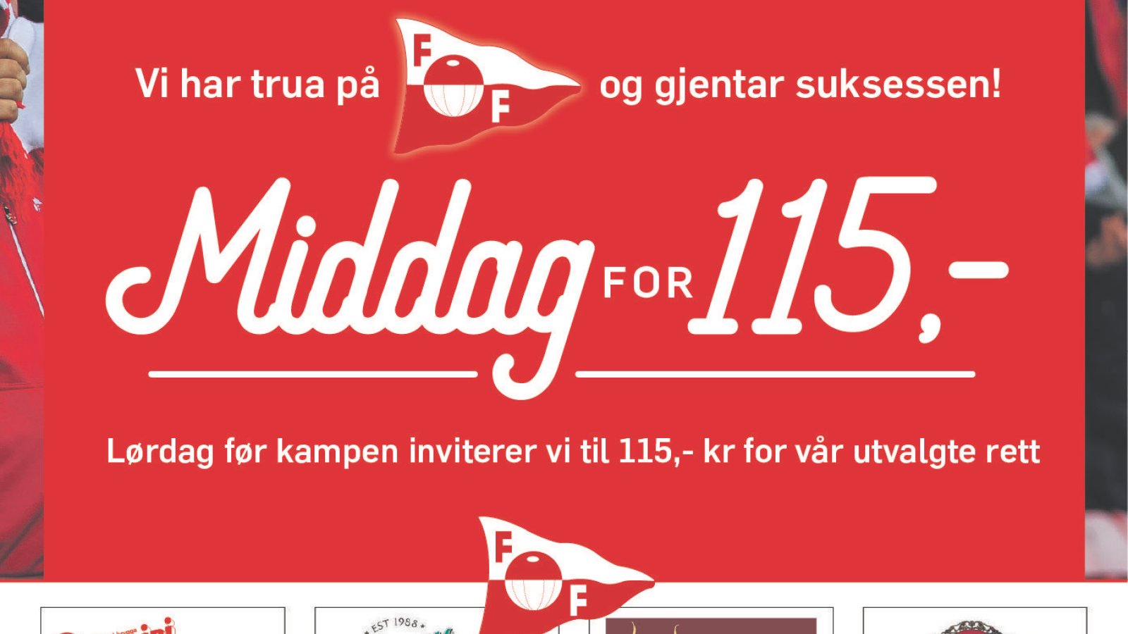 7 av byens restauranter går nå sammen for at ikke FFK-publikummet skal gå sultne på kamp lørdag. For 115 kroner får du kjøpt middag før kampstart i byen.