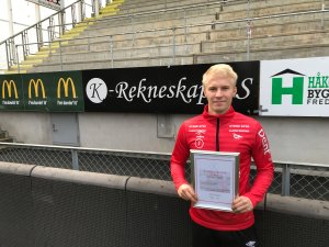 Vår gode samarbeidspartner K-Rekneskap fra Ørsta deler ut prisen og har kåret Joona Veteli til beste spiller og vinner av K-Prisen 2018.