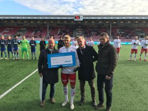 En overrasket Thomas Rekdal fikk like før kampstart i dag det synlige beviset på at han er Årets Talent i Postnordligaen 2018!