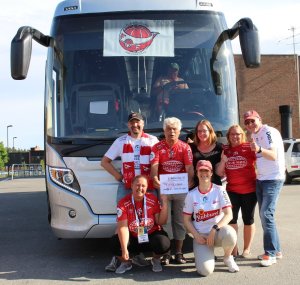 Disse 50 reiser 300 mil i buss for å se bortekampen mot Mjølner på søndag.